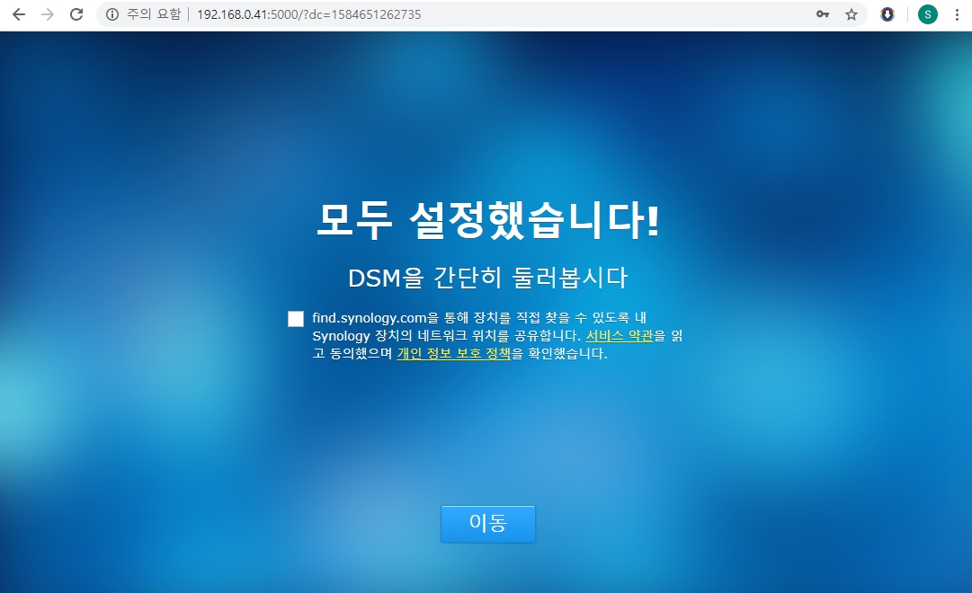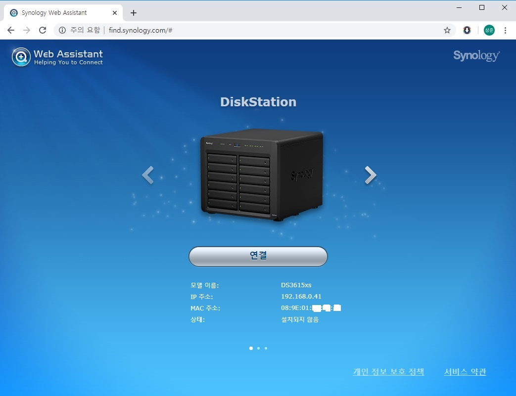4. 같은 네트웍에 있는 다른 PC 에서 브라우져를 실행 하고 그곳에 find.synology.com/ 주소를 입력한다.
