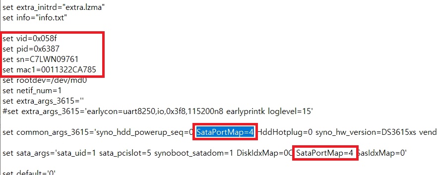 그리고 여기서 주의 할것중에 하나는 set sata_args 파라메터 중에 SataPortMap 라는 항목이 있는데