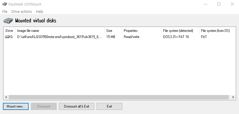 8. 위의 과정을 하고 나면 선택한 15M Drive 가 Mount 되어 리스트에 보인다.