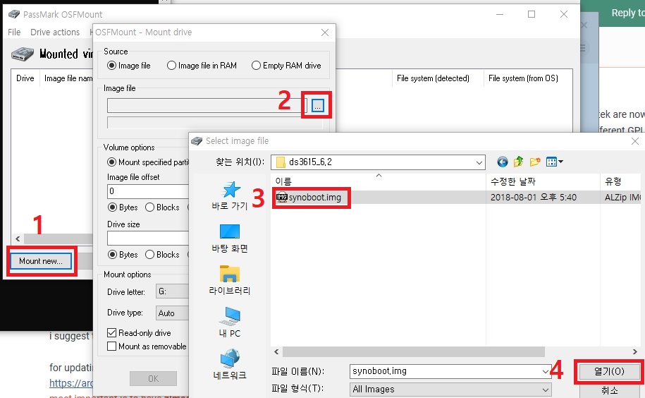 synoboot.img 파일을 선택하고 열기를 누른다.