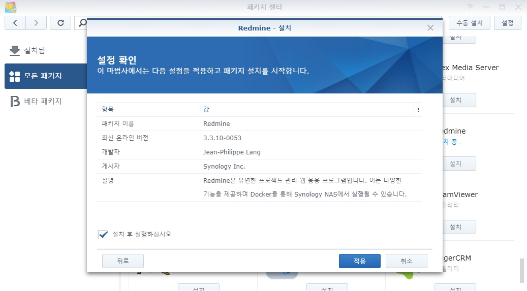 다음 글에서는 시놀로지 Redmine 이전 하는 내용을 해볼예정이다.